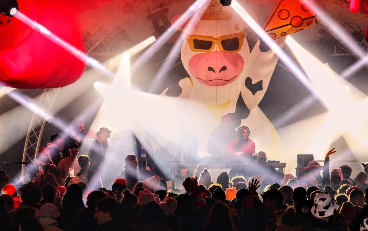 2ème jour : l’ambiance atteint son climax et la fête explose. La Vache Techno prend son envol. Et avec elle, tout le festival bascule dans le grand final.